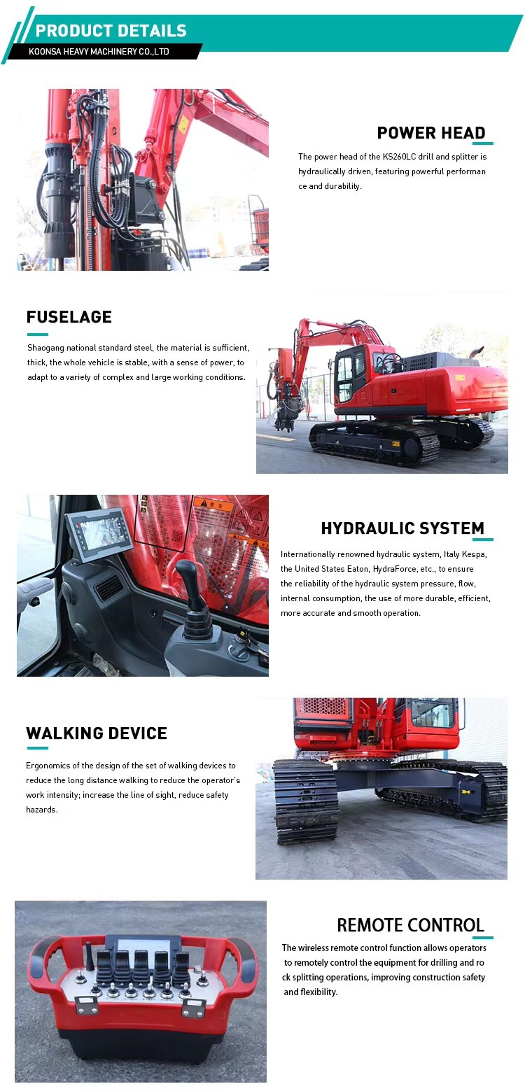 5. The wireless remote control function allows operators to remotely control the equipment for drilling and rock splitting operations, improving construction safety and flexibility.