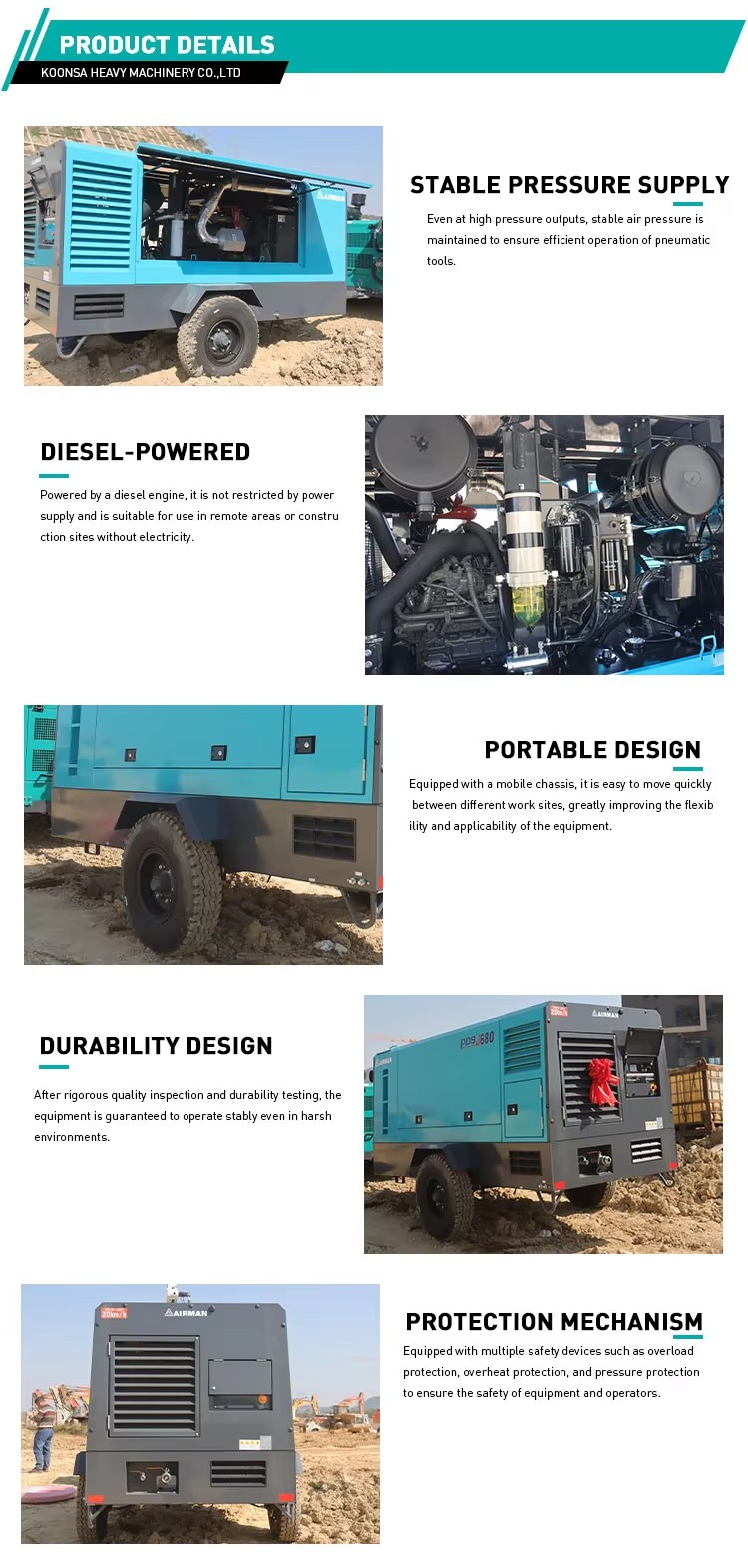 | Type | Portable, diesel-driven rotary screw |